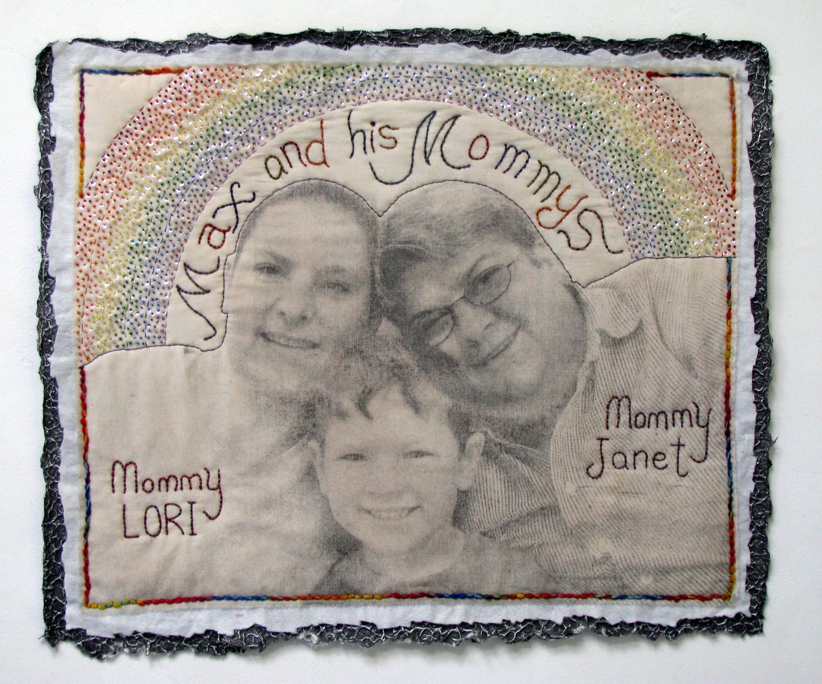 Mommys, Mommy Lori, Mommy Janet. Xylene Transfer on tea-stained muslin. Hand
